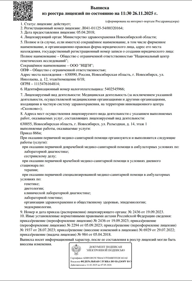 Лаборатория имеет полную аккредитацию и сертификацию. Исследования передаются с подробной и развернутой расшифровкой по соотношению показателей.